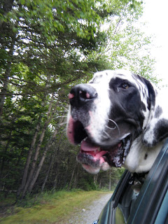 10:00 PM: Time for bed, I go outside to tinkle one last time. The kitties are put downstairs so that I don't chase them unsupervised, kitty door is closed. Momma and Dad go to bed.